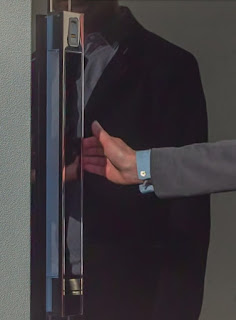 Die Fortsetzung der Lightshow darf nur der autorisierte Türbenutzer genießen, alle anderen bleiben kopfkratzend vor der Tür stehen - oder müssen ihren Schlüssel hervorholen, falls sie zwar einen solchen haben, aber nicht in der Datenbank der abgespeicherten Fingerscans enthalten sind. Zur Not, so wollen wir hoffen, gibt es auch immer noch einen Klingelknopf, über den man sich bemerkbar machen kann, wenn man wirklich Gründe hat weiterkommen zu wollen. Die Person, deren Finger erfasst ist, erlebt unterdessen, wie die vorher plane Fläche neben dem Fingerscan sich vom Türkörper abhebt und nach vorne ausfährt, dabei eindrucksvoll hinterleuchtet wird. Nun ist diese lliegende längliche Fläche auf einmal ein illuminierter Außengriff, lässt sich anpacken und die Tür daran fassen. Die Automatik hat gleichzeitig schon das Schloss geöffnet und die Tür muss nicht selbst aufgeklinkt werden - man führt sie sozusagen nur am Griff. Nach dem Schließen der Tür fährt der Griff selbsttätig auch wieder ein und die LEDS verlöschen. Pirnar gibt an, dass ein stromunabhängiger Mechanismus verhindere, dass die Finger einmal während der Operation eingeklemmt werden könnten, wenn sie etwa zu lange am Griff blieben. Sicherheit verspricht das neue Design nicht nur dadurch, sondern auch durch den Entzug des Öffnungsmechanismus im eingefahrenen Zustand vor Manipulationsversuchen unautorisierter oder sehr gefrusteter Zeitgenossen vor der Tür. Wir empfehlen, sich über die Videoüberwachung (ehemals Türspion) an den ratlosen Gesichter uneingeweihter Türbesucher zu delektieren. Und Ihren Freunden können sie zeigen, was Ihre Pirnar Haustür so drauf hat. Dass hier noch ein Schlüsselloch vorhanden ist, hat aber selbst für futuristische Jedi-Ritter noch etwas Beruhigendes. Sollte aus irgendeinem Grund der Mechanismus nicht funktionieren, etwa weil der Finger gerade verölt ist vom Auto- oder Raumschiffreparieren, gibt es immer noch den guten alten Schlüssel aus dem Pre-Raumfahrts-Zeitalter, um hineinzukommen.