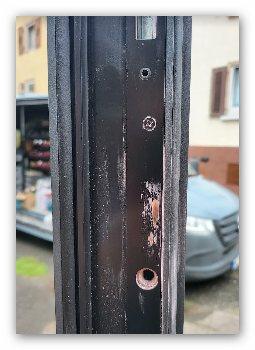 Delle Innen oben und Farbe an Verriegelung beschädigt